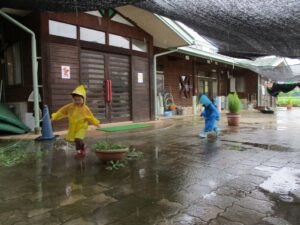 反対を見ると保育園が見えます。園庭では幼児組のお兄さんお姉さんが遊んでいました。