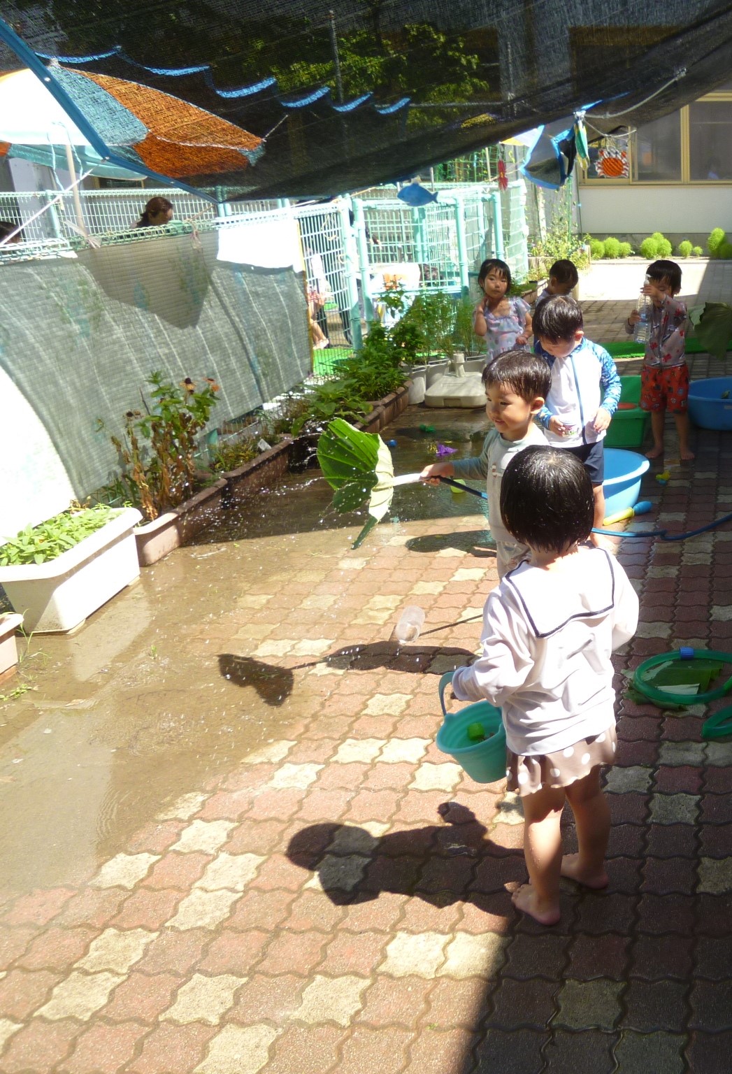 地域の方が温泉のお湯を持ってきてくださったので、掘ったレンコンをお湯で洗いました。冷たい思いをしなくてよかったです。未満児さんも興味を持って一生懸命洗ってくれました。