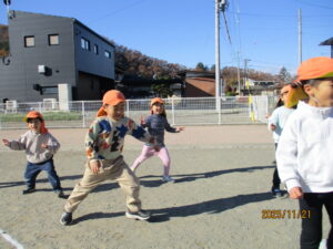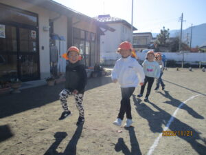 ・スキップや、カニのような横動きをマラソンに取り入れることで、より楽しく体を動かすことができました。子ども達からも「今度は、うさぎジャンプでマラソンしようよ」など新しいアイディアも聞かれ、意欲に繋がっていると感じました。
