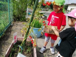 年少さんの育てたカラフルなミニトマトは、たくさん収穫して給食でおいしくいただきました。