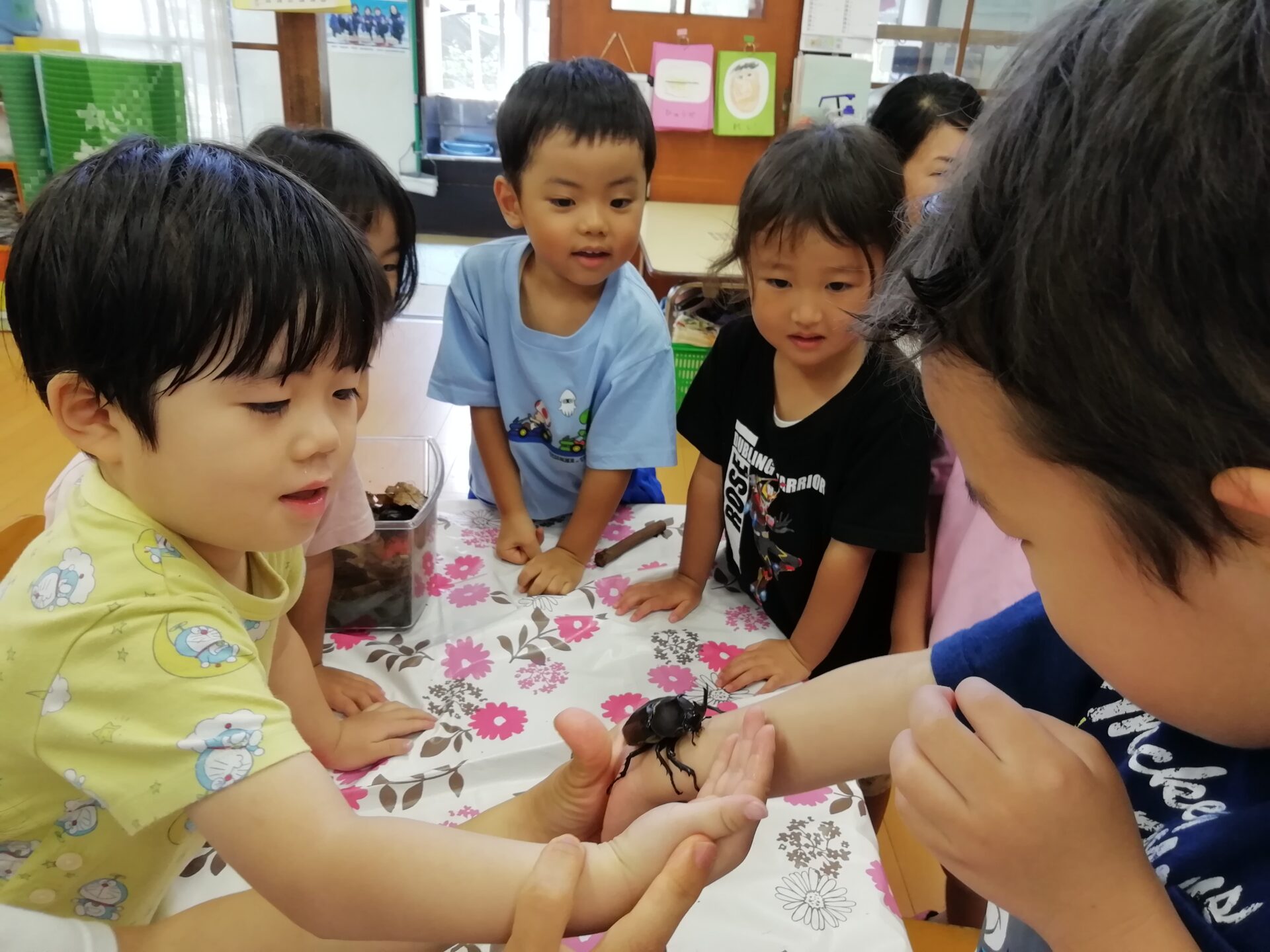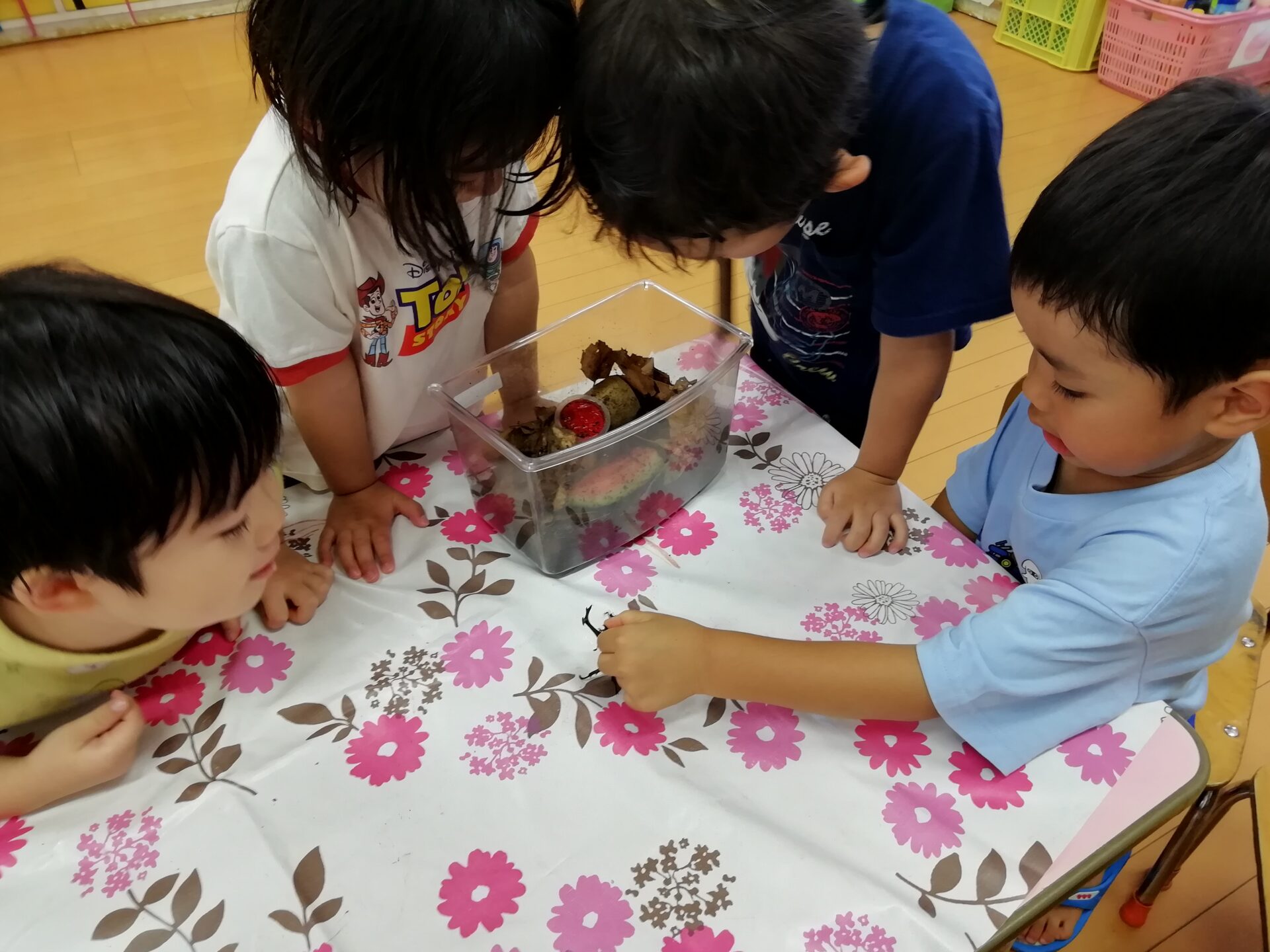 絵本や図鑑を見て、「同じカブトムシはこれかな?」と真剣に調べている姿もありました。