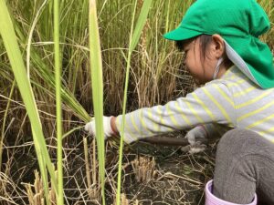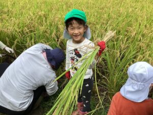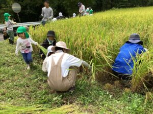 この日に稲刈りしたお米は、後日、収穫祭や親子で飯盒炊飯体験で使用する予定です。