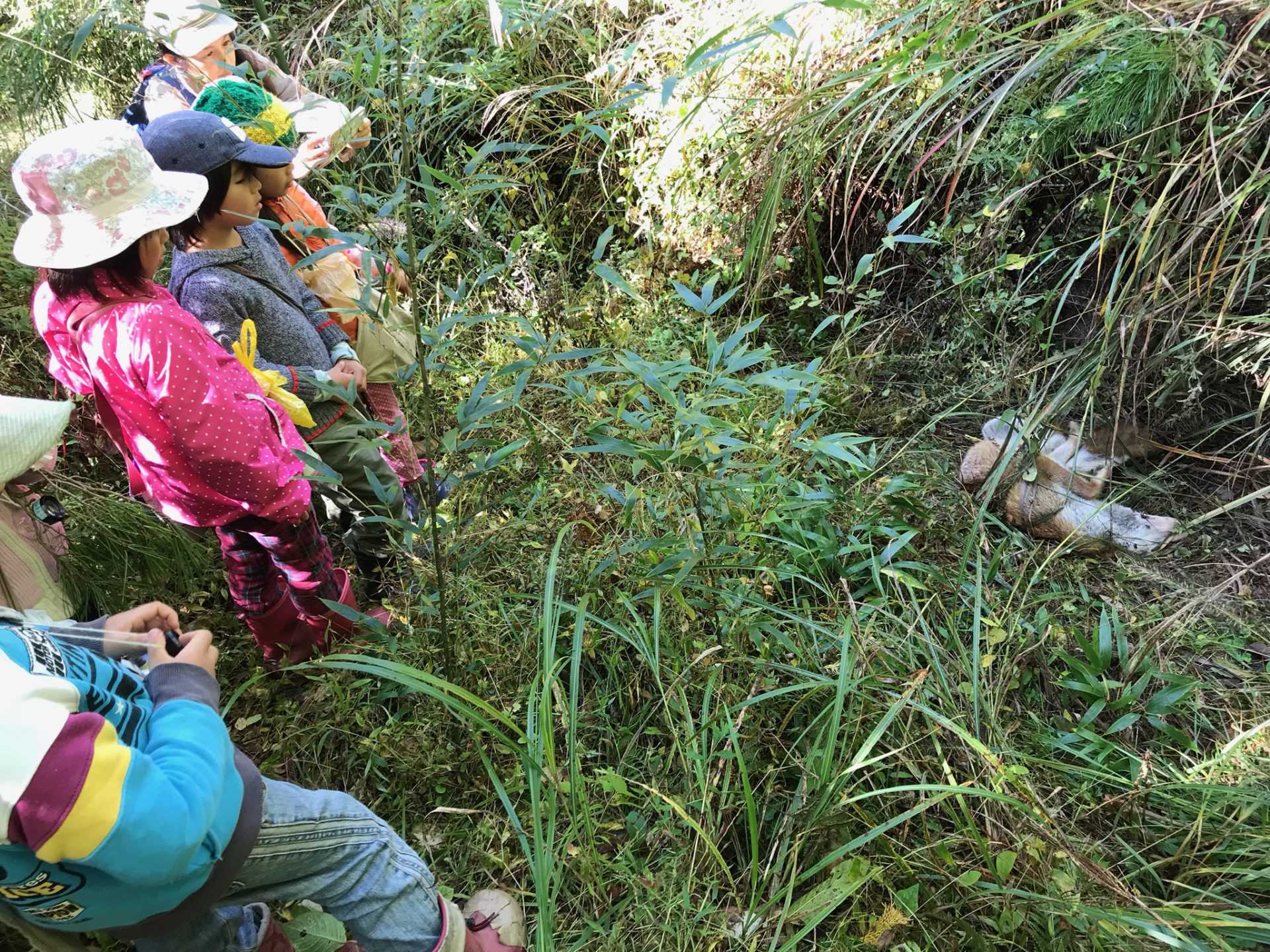子どもたちはキツネをびっくりさせないよう、誰も喋らない