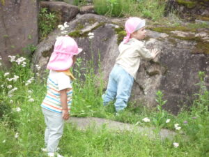 春は、村内の散歩の途中にあるお宅の八重桜をいただいて摘み栄養士が桜茶を作っていただく。雪解けの水たまりで遊んだりよもぎ摘みをしたりします。