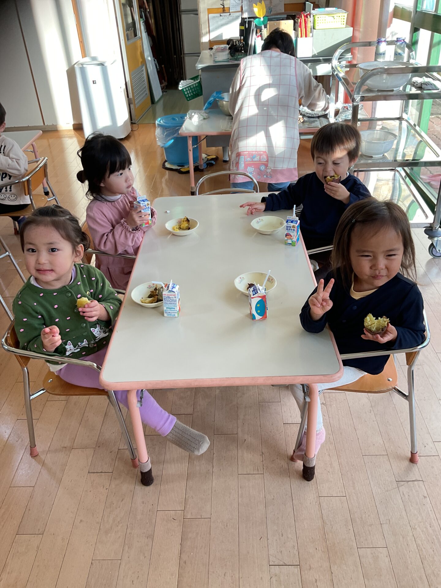 そして、、、お昼寝起きには、お待ちかねのやきいもができあがり、みんなでおいしくいただきました!