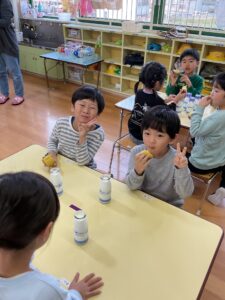 年長児が大事に育ててきたさつまいもを、全園児で美味しくいただきました。