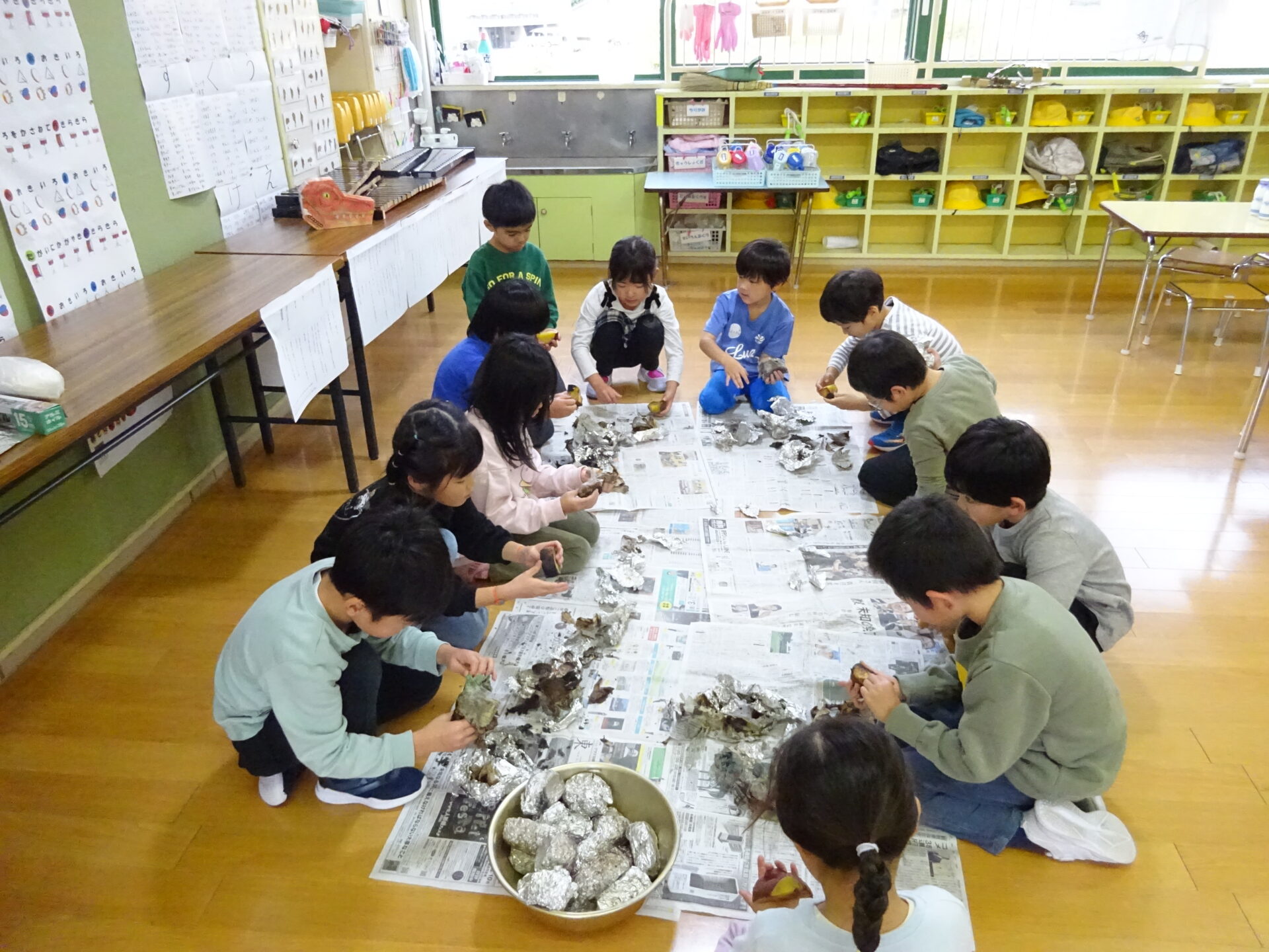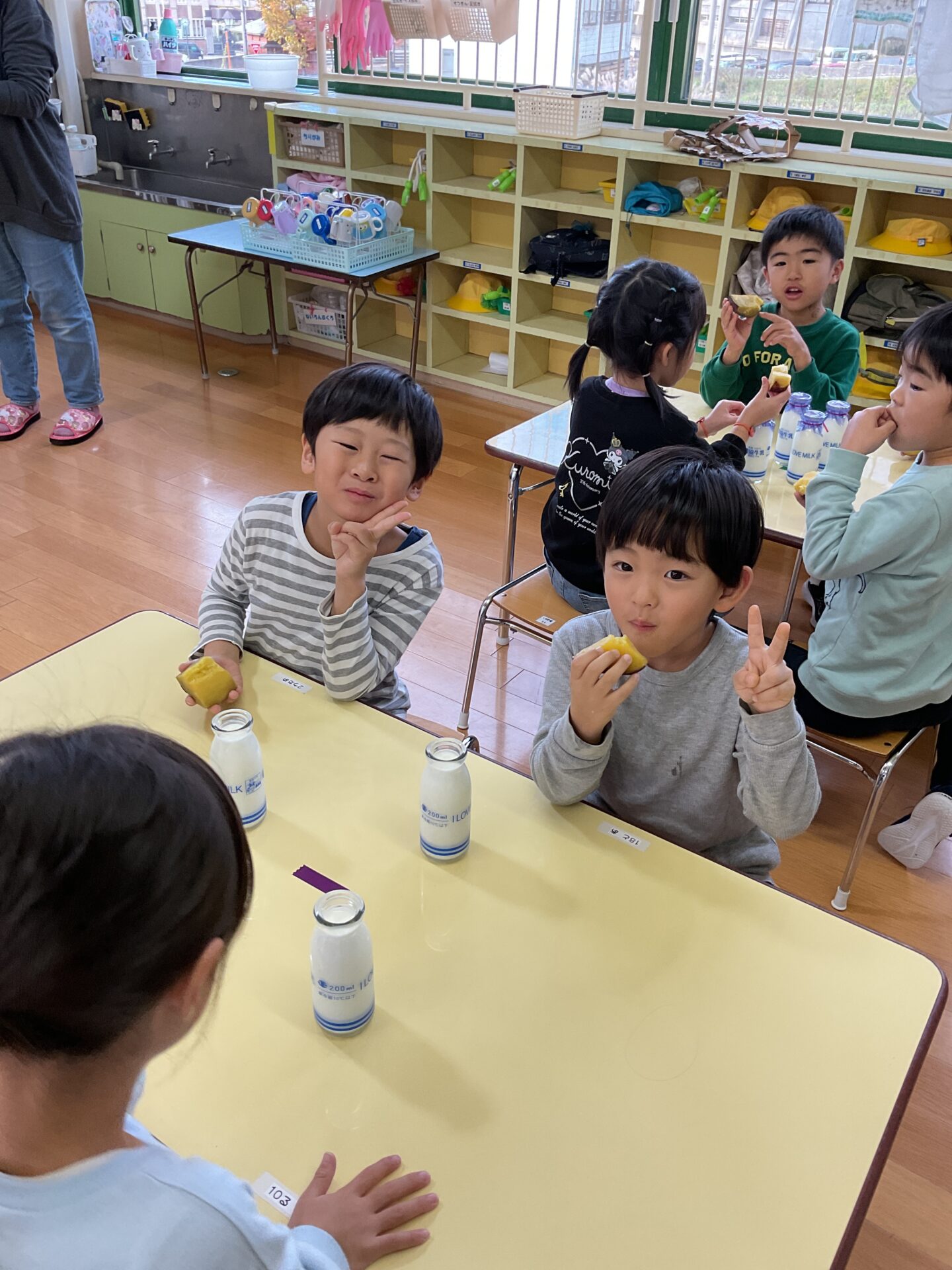 「葉っぱの匂いがする」 「いつも食べているやきいもと違う」など、子どもらしい感想も聞かれましたが、みんなで秋ならではの旬の味をいただきました。