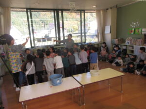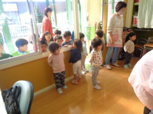 その様子を年少児さん、0,1,2歳児さんみんなで見学に行きました!