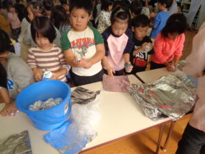 年中児さんが、さつまいもを新聞紙とアルミホイルで包んでくれました!