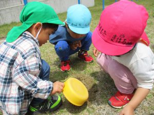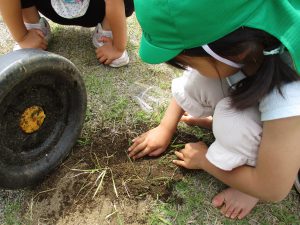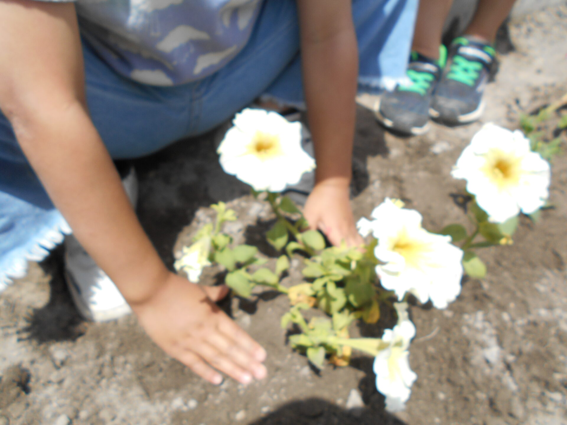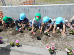 「たくさんお花咲かせてくれるように、大事に植えようね」
