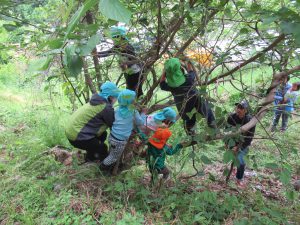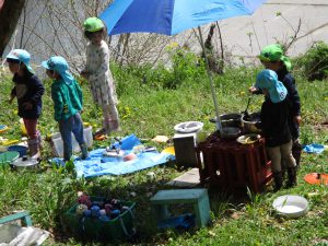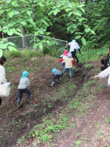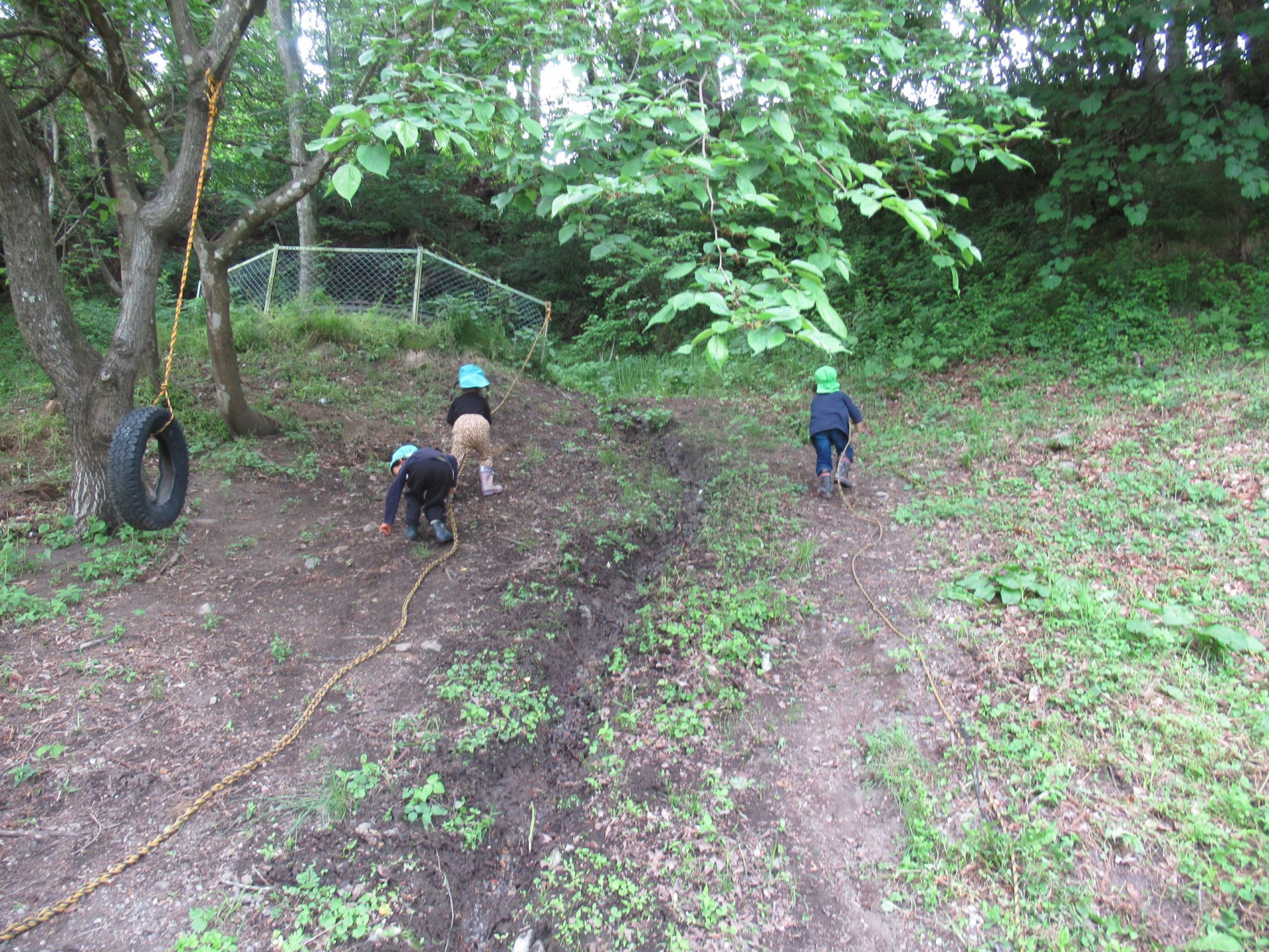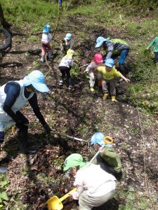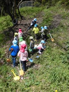 ・自然豊かな地域性を生かし園周辺の林に基地を作り、毎日子どもたちが遊びに行ける場を作り遊んでいる。