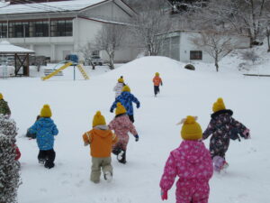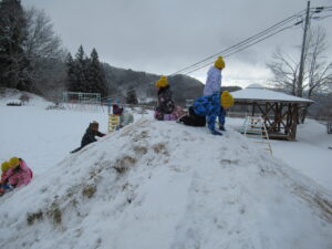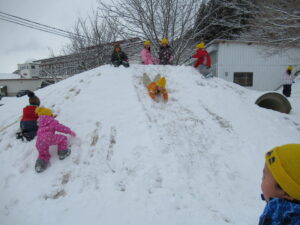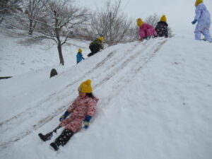 12月に1回雪遊びをしてから全然雪が積もらず・・・。2月の大寒波に子どもたちは大喜びです。