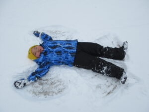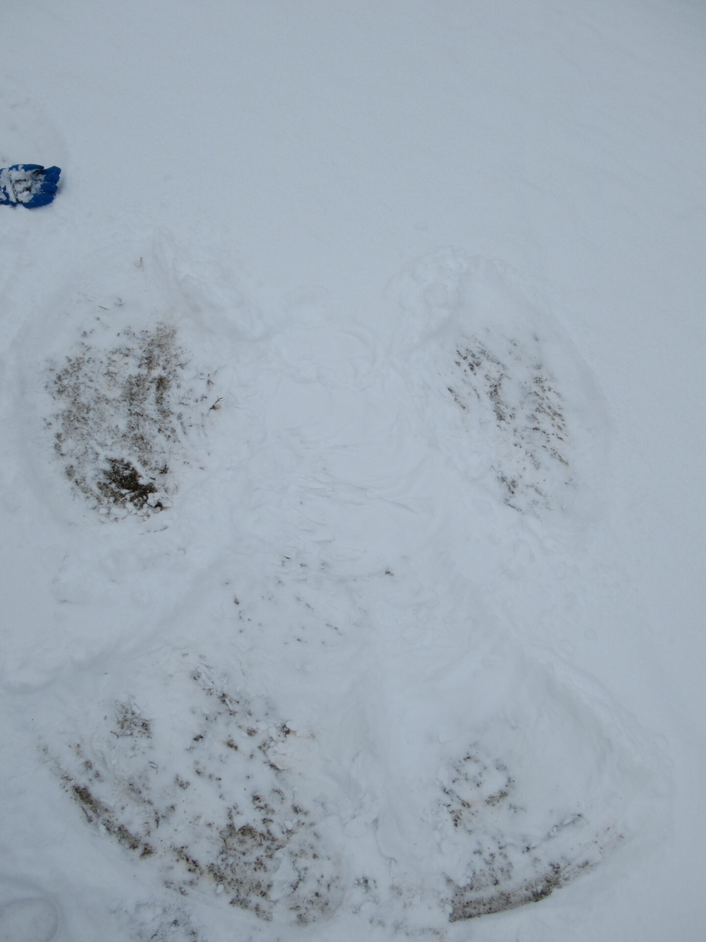 雪型の上に寝転んで手足を動かすと、おもしろい形になりました。