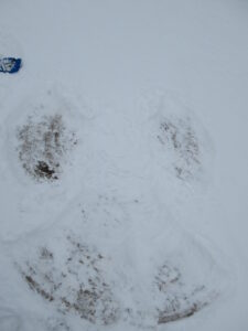 今日の雪は柔らかいなあ・・。早く走れないね・・。