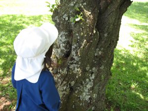 東保育園は緑豊かな自然の中にあります。園庭には桜の木・トウカエデ・イチョウの木・エゴノキなど大きな木もたくさんあります。