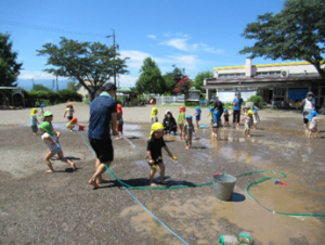 地域特産の果樹や野菜、花をいただく機会も多くあり、地域の人に支えられて生活していることを知り、感謝の心を育てることも大切にしています。穏やかな自然と地域の人に囲まれた保育園です。