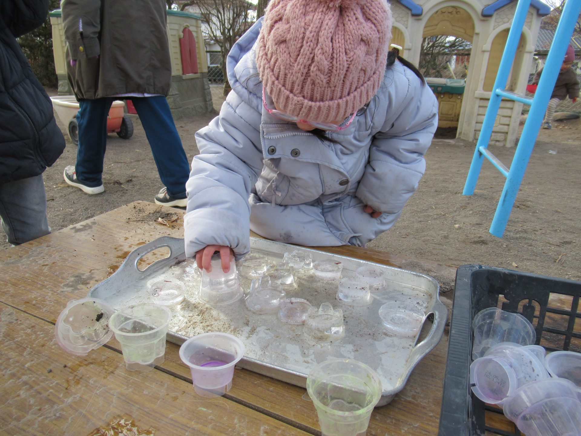 寒さに負けず、雪遊びや氷作りなどまだまだ楽しむぞ!