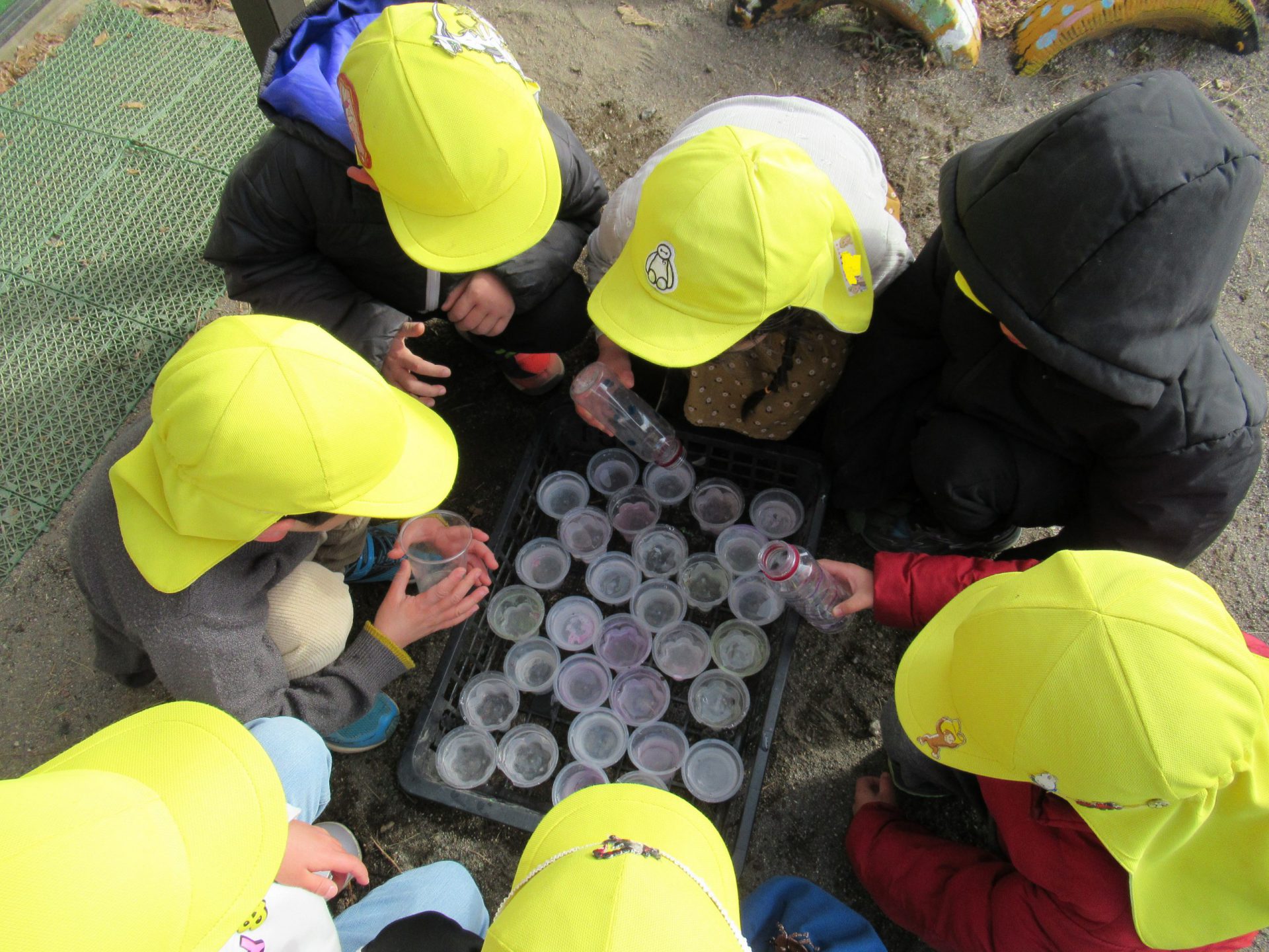 「明日も氷ができるといいね」と氷作りの準備をしていた子どもたち。明日の朝が待ち遠しいね。
