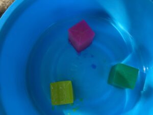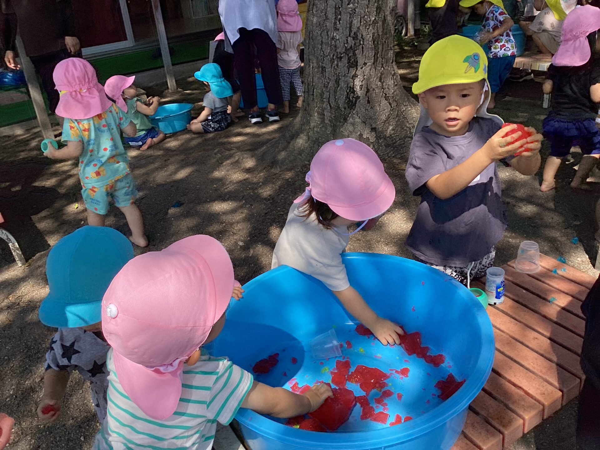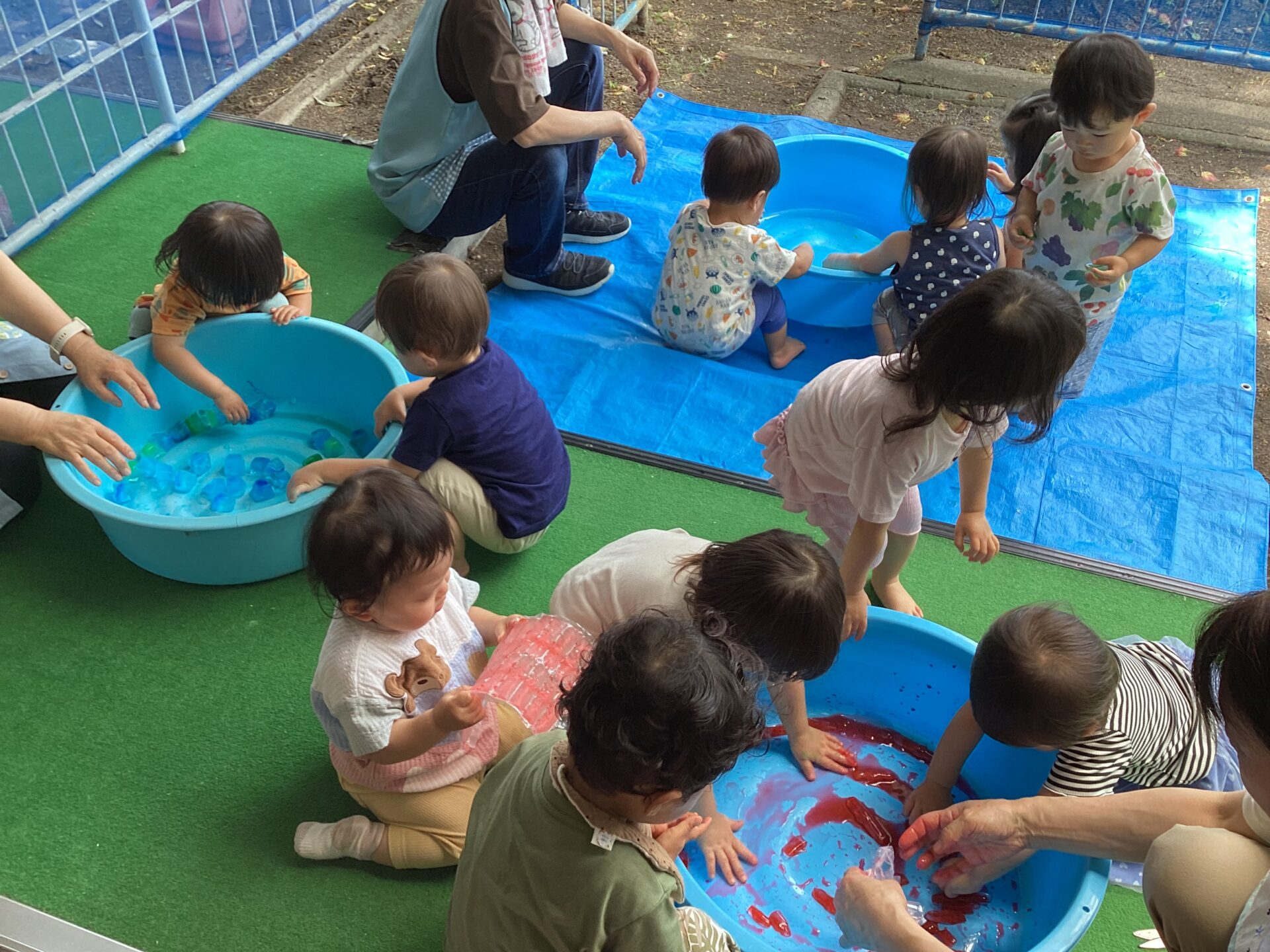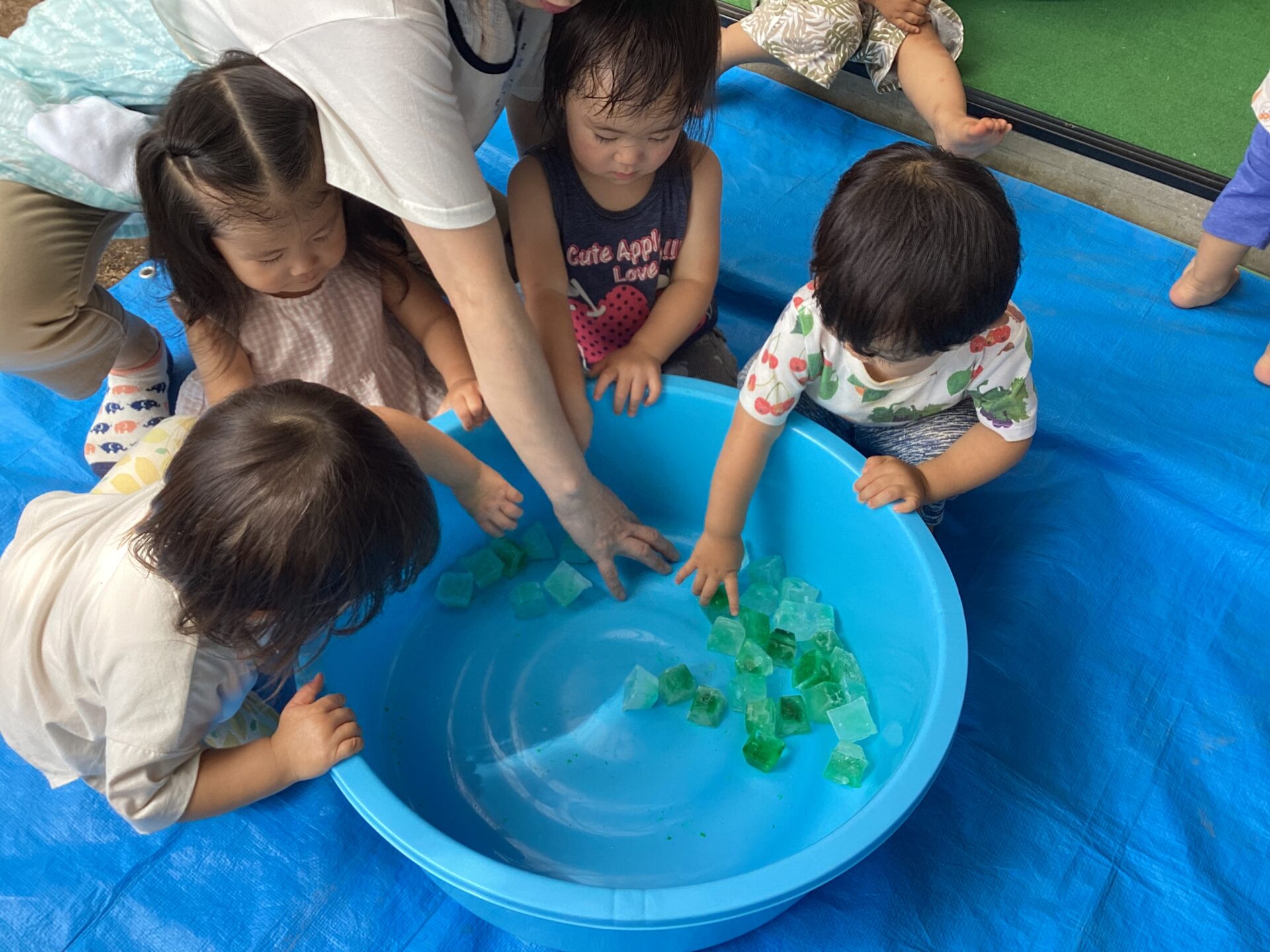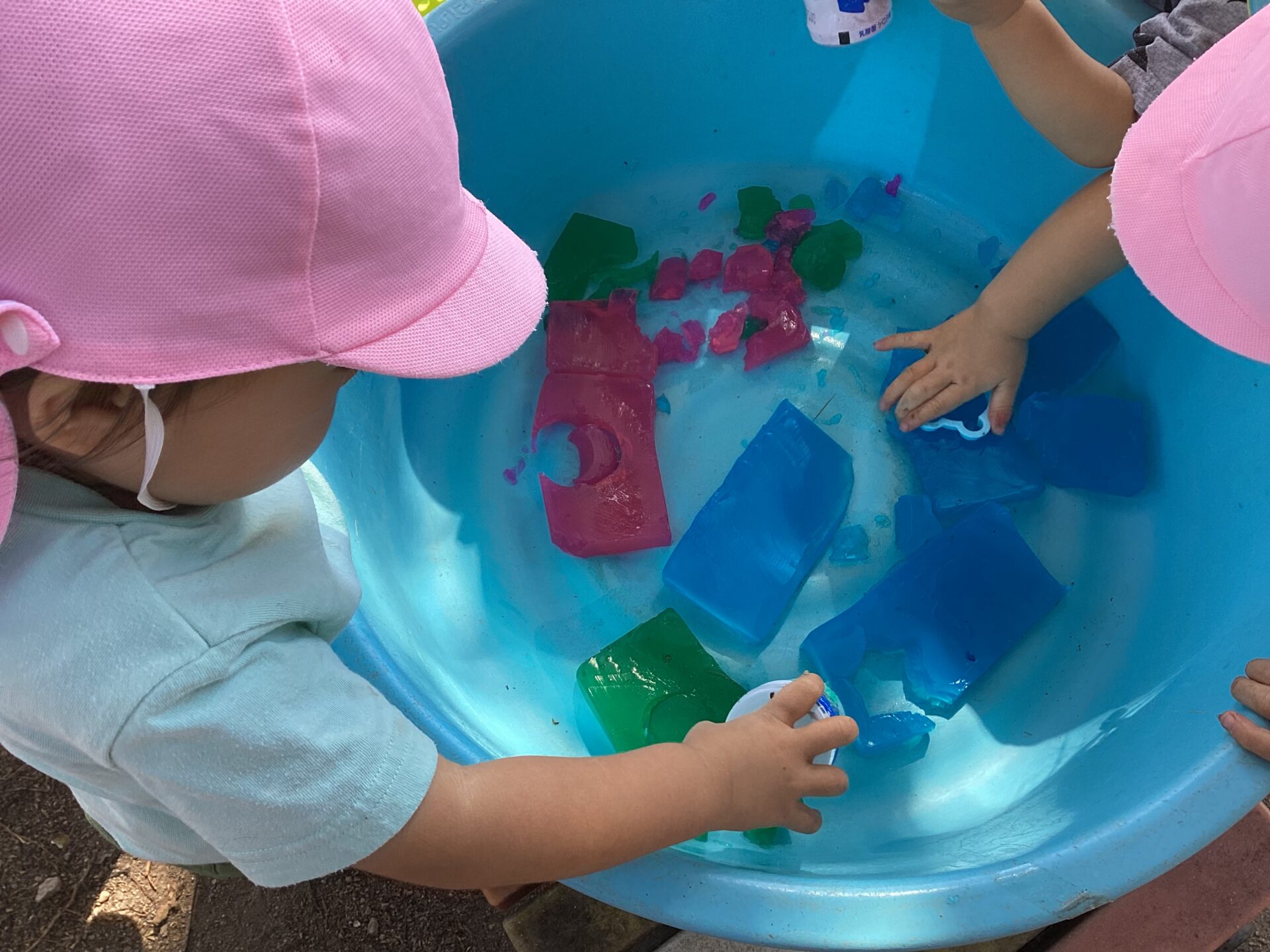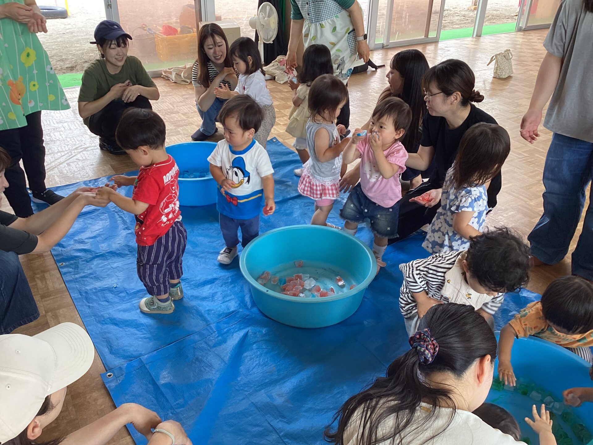 氷を手に持ち、じっとと溶ける様子を見ている子や、こっそり口に入れようとする子も…様々な姿が見られました。