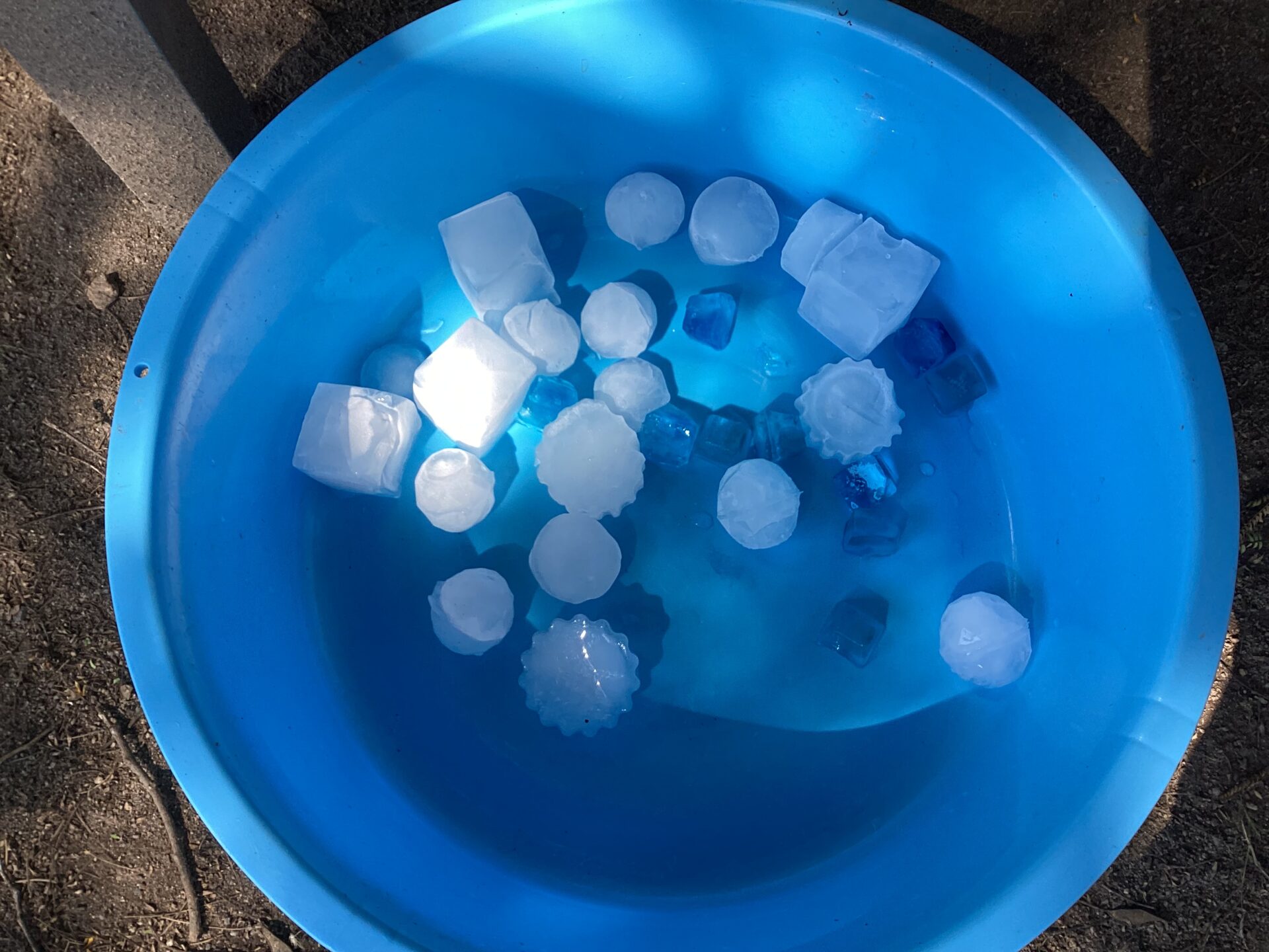 「あれ?ないね」さっきまでタライにあった氷を一生懸命探していました。