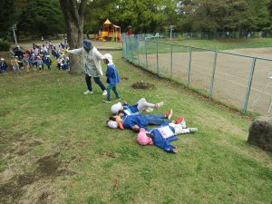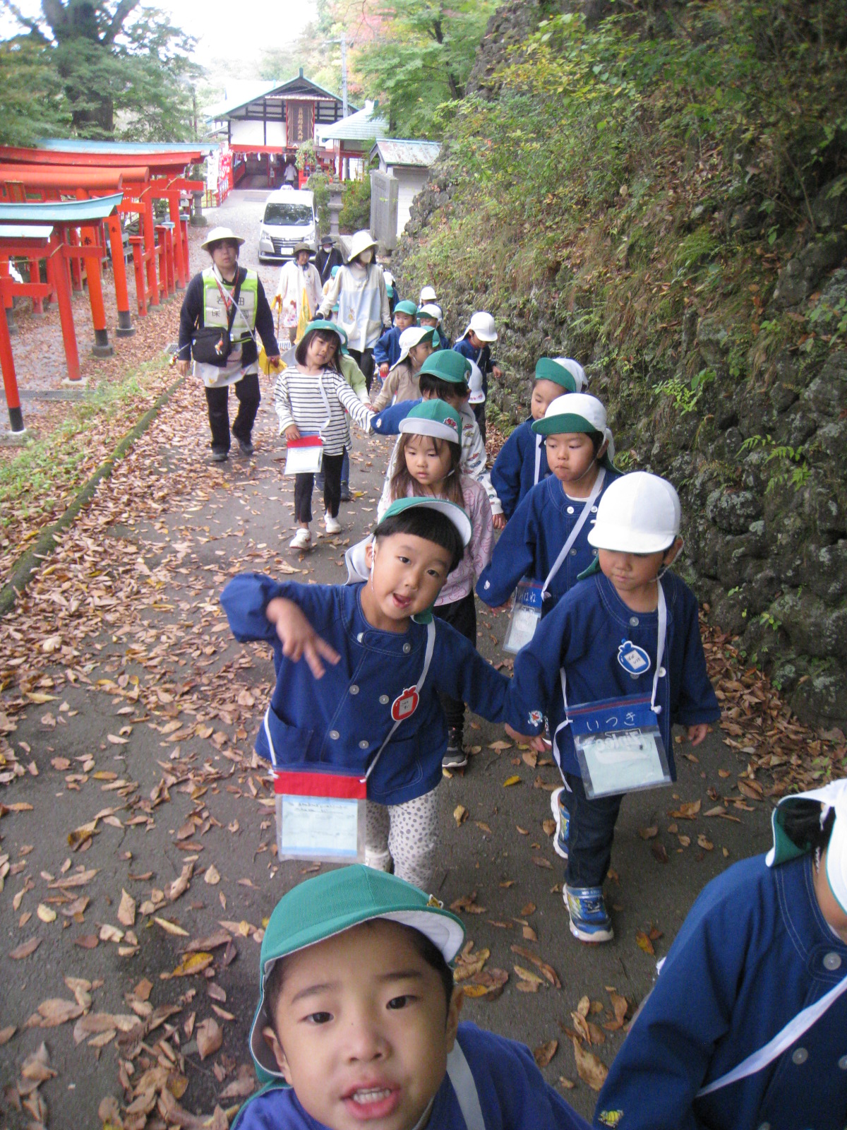 ①散歩(草花遊び,土手滑り,ソリ滑り,どんぐりや栃の実等の木の実拾い)②草花や木の実を利用して製作③畑作り(トマト,ナス,ピーマン,トウモロコシ,ジャガイモ,キュウリ,オクラ)④グリーンカーテン(あさがお)⑤草木染⑥プランターや花壇で花を育てる⑦泥んこ遊び⑧泥だんご,トンネル作り等