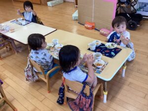 ・きゅうりやピーマンを育て、収穫し、実際に食べることで自然や食への関心が高まり、苦手な野菜にも挑戦する姿が見られた活動でした。今後も子ども達の気付きを一緒に喜び合いながら、食べることへの興味や自信につながるよう声を掛けていきたいと思います。