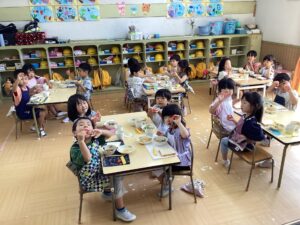 最後は給食の先生に切ってもらって、みんなでいただきました。