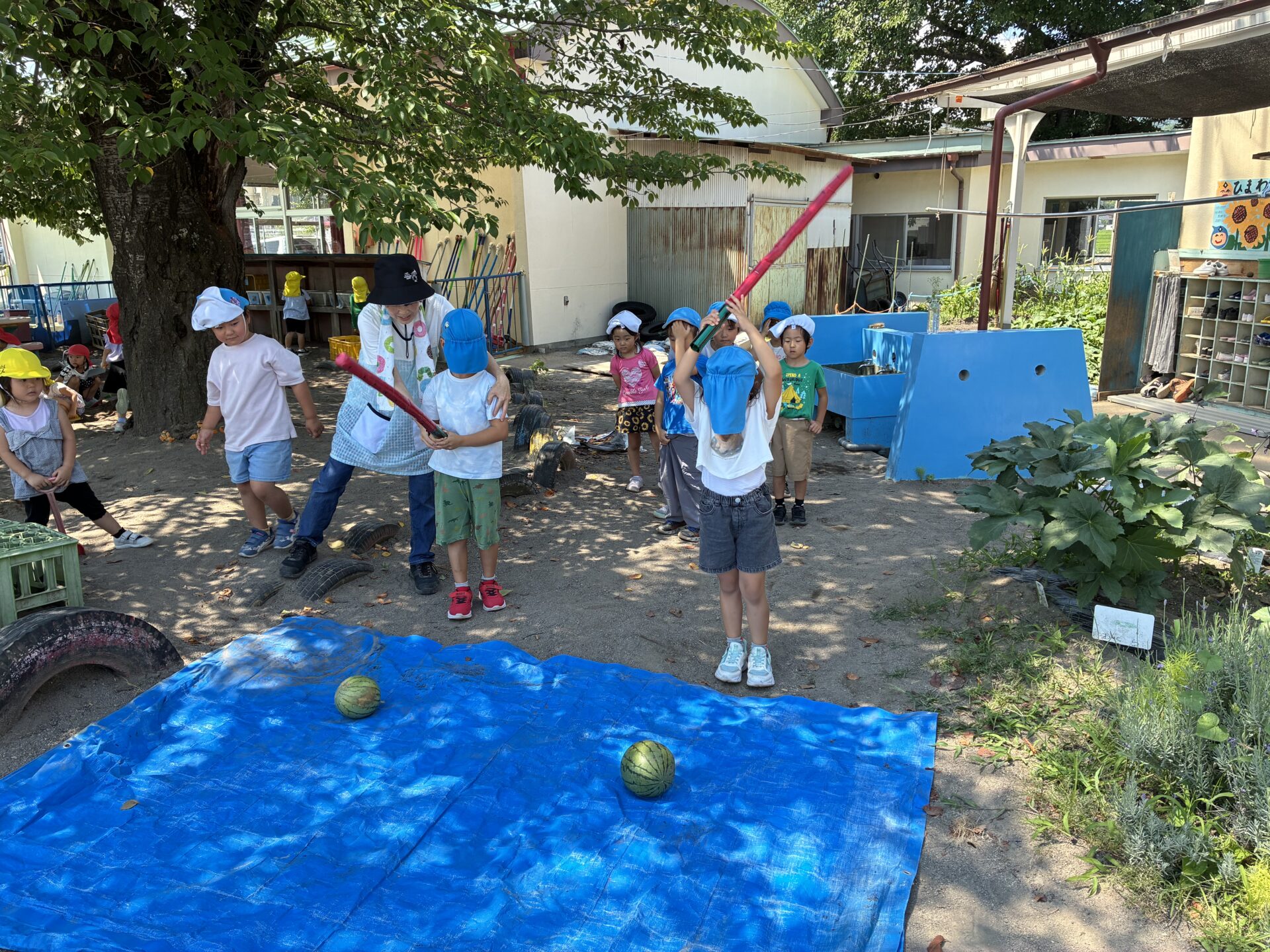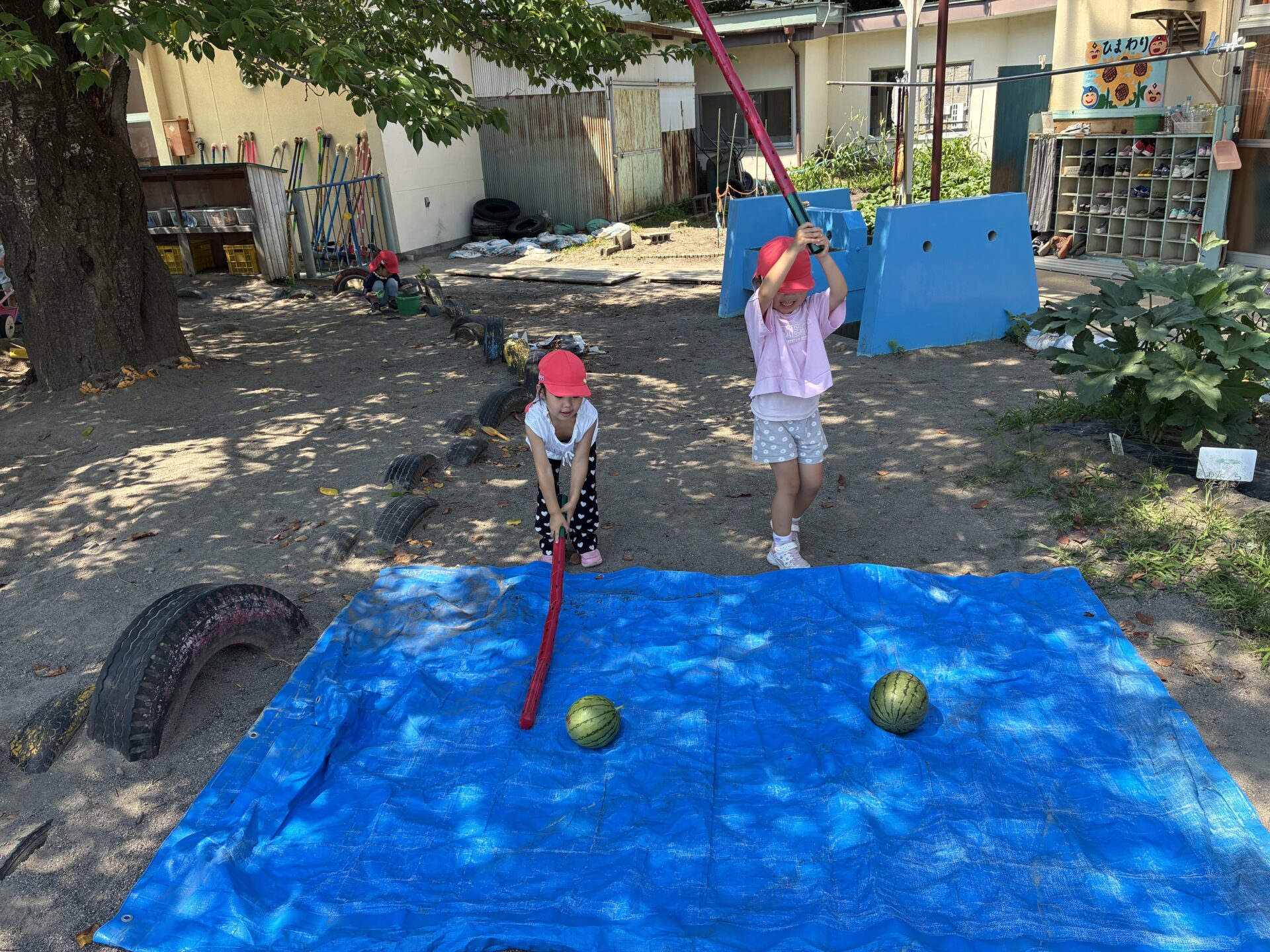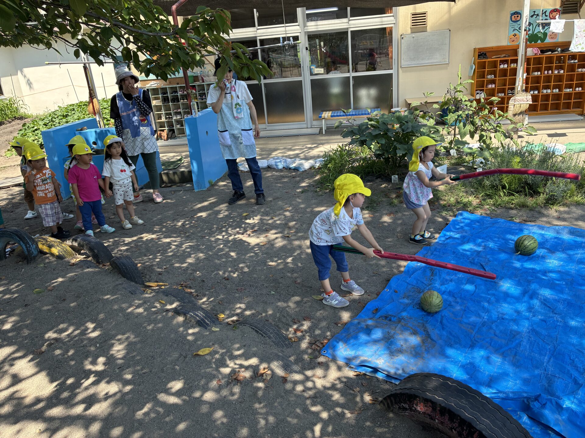この日はみんなで収穫し、スイカ割りを楽しむことにしました🍉