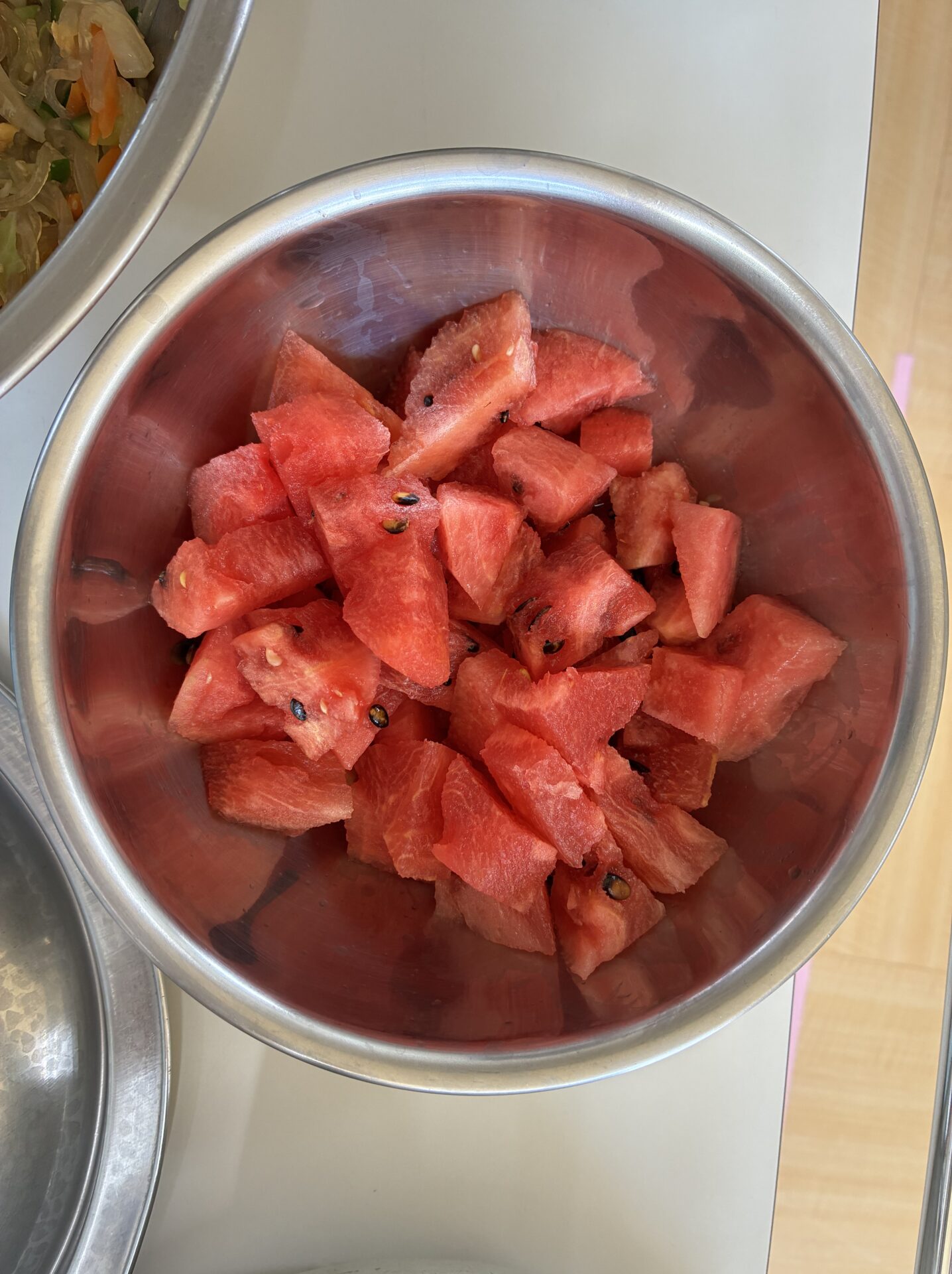 給食室で切ってもらったスイカを見て‥