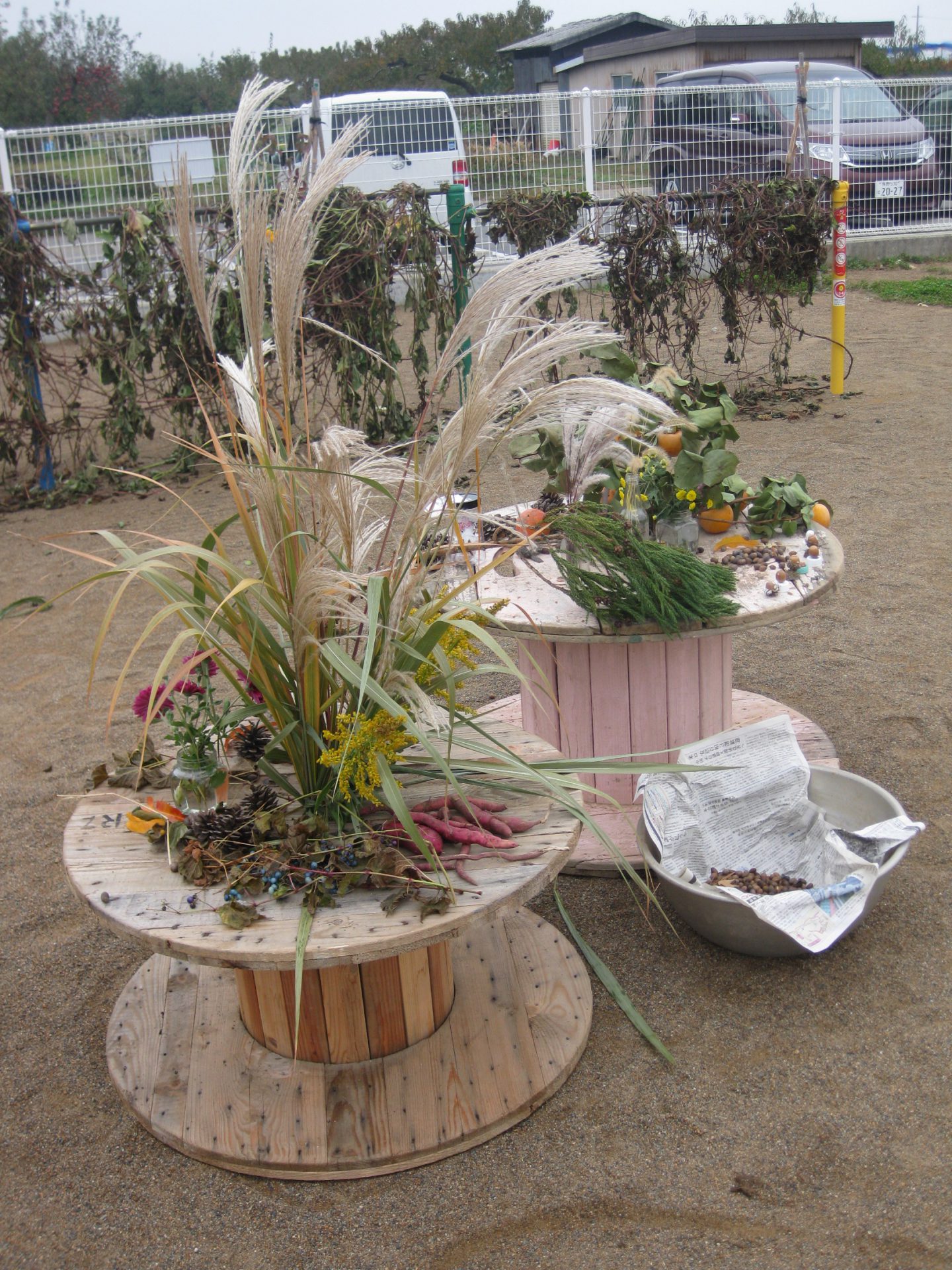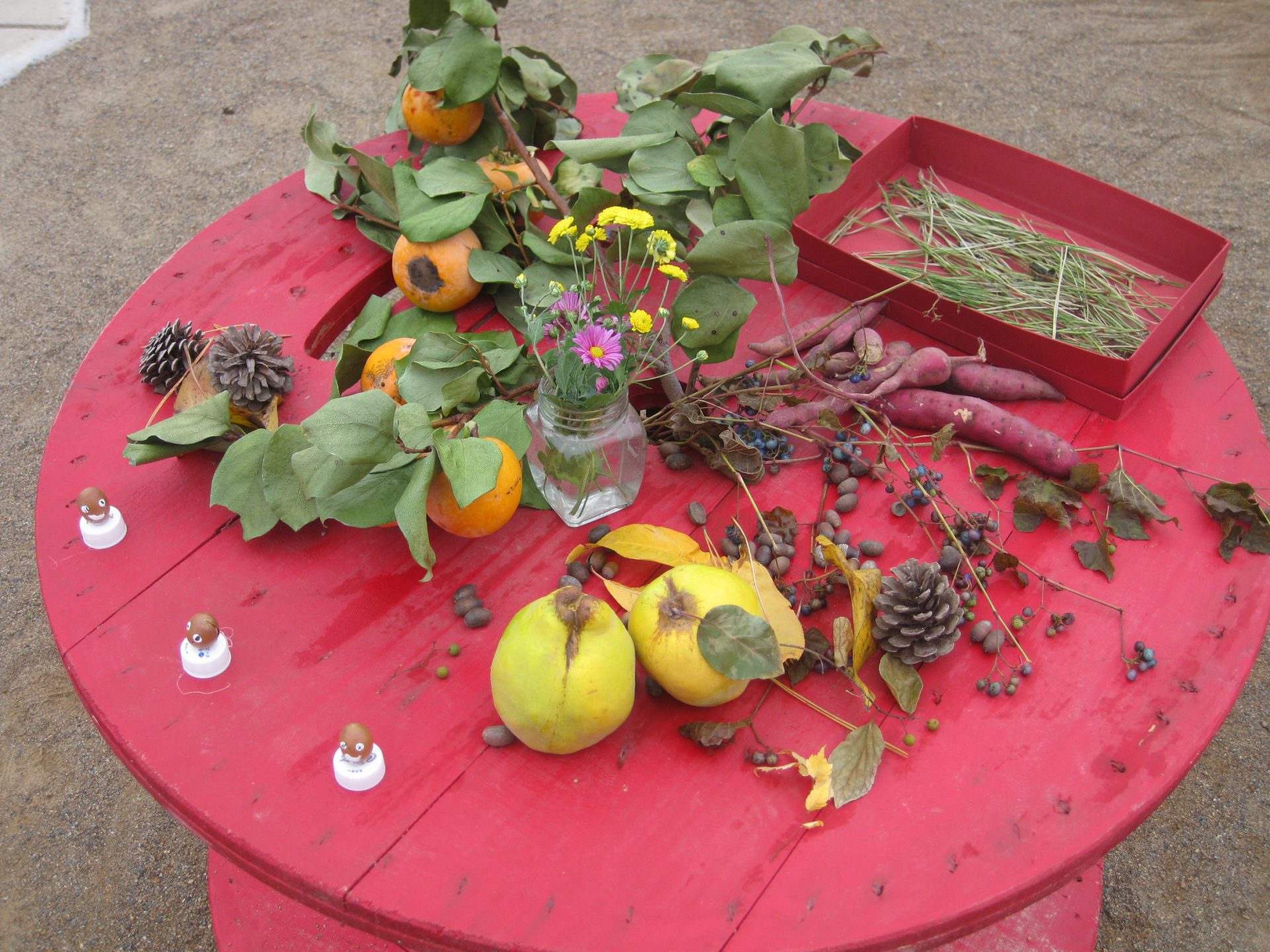 お楽しみ、今日は焼きいも会!火をたくところなんて…見るのは久々…わぁ~すごい、煙モクモクでてくるよ。あったかいねぇ…でも、やっぱり煙い~ゲホゲホ。お芋さん、美味しくなってね。お母さんと秋の自然の中、虫を探したり、草花を摘んだり…ゆっくり、いろいろなものを発見できて嬉しかったよ。またいっしょにおさんぽにいこうね。