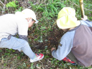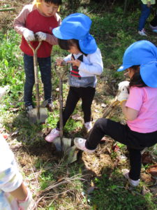 ・カエル、カナヘビ、蝶、カタツムリ等の生き物が園庭に生息できるよう、この地に生息する草花などを植えて、その中で自由に遊んでいる。