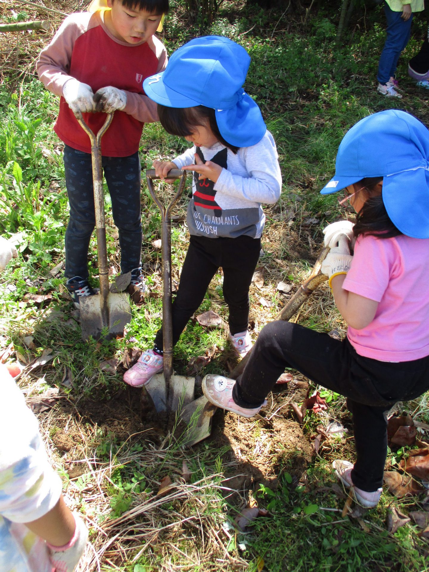 ○自然豊かな場所にある保育園であることを生かし、園外に出ることで地域を知り遊びを広げている。
