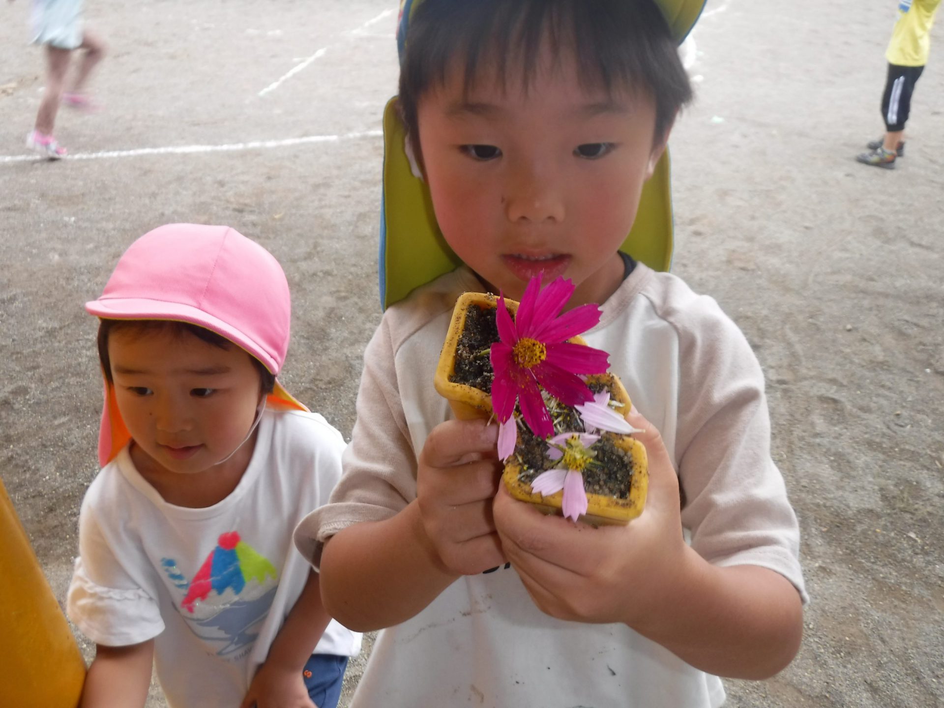 この時期に蜘蛛の巣がたくさんできることや、木の実が赤くなって落ちることなど、さつまいもの水やりの時には気がつかなかった自然に気がついた子ども達。