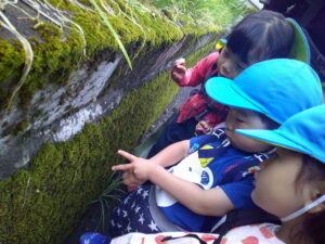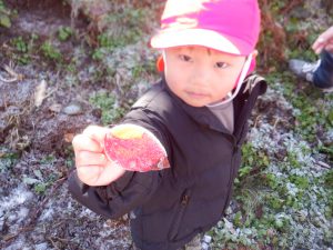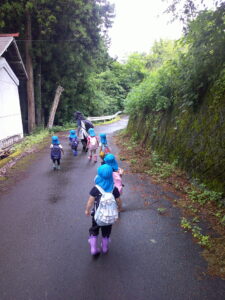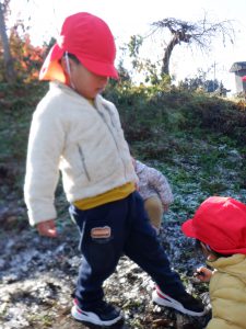 ・天候に関係なく毎日園外に出かけ、周囲の自然や人と関わると共に自然の中で足腰を鍛えています。
