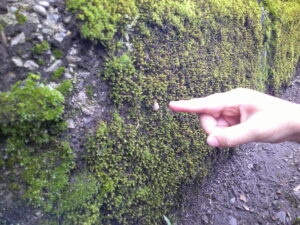 裏庭に来るとさっそく子どもたちが蜘蛛の巣を発見しました。