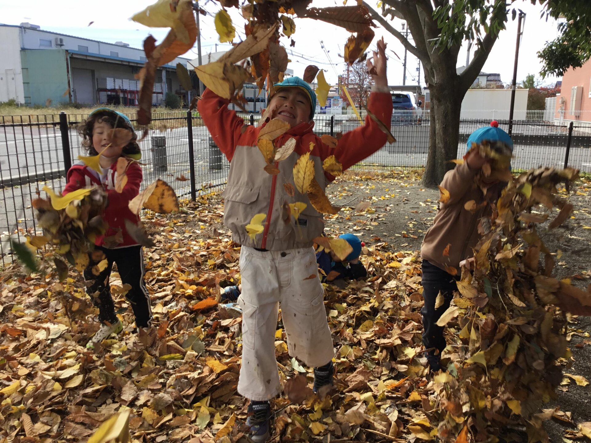 園庭中の落ち葉を集めてこの日は満足したのか、落ち葉遊びからほかの遊びへと移り変わっていきました。