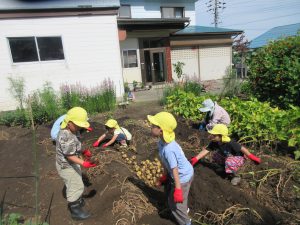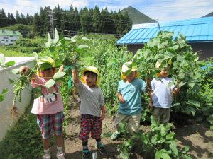 ○春には山菜取りや牧場訪問、秋には収穫祭、冬にはスキー教室など、自然と触れ合うことが出来る保育活動と実践しています。