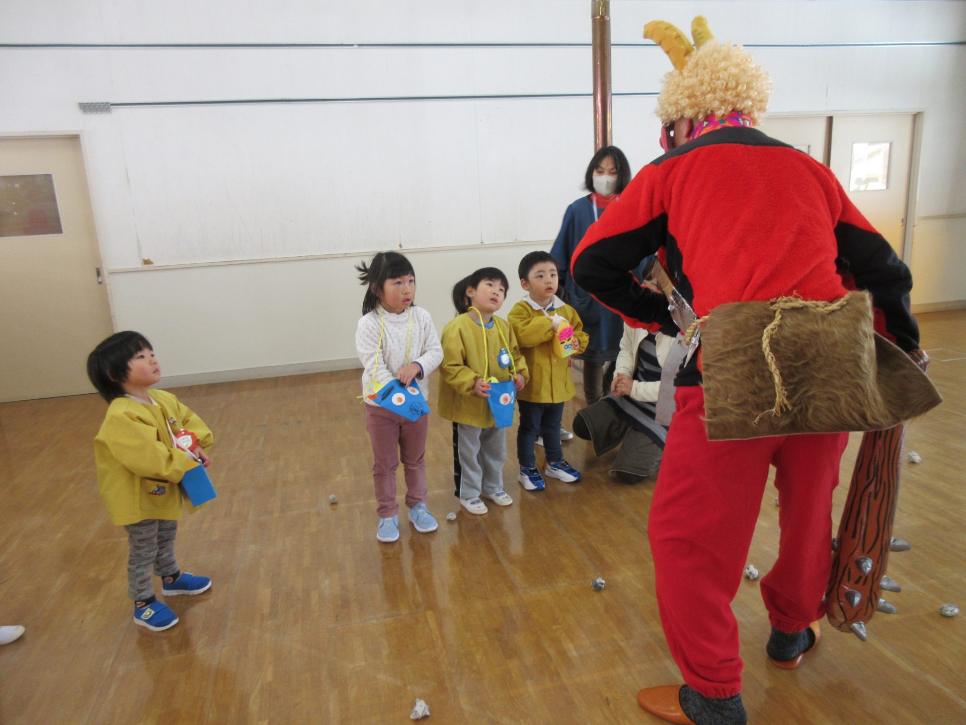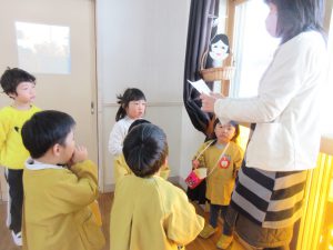 「ん?!なんだか かきみたいなにおいがするぞ。」と興味深々な子どもたち