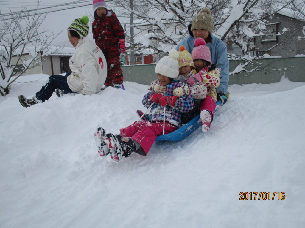 四季の変化を肌で感じながら過ごすことができる富士里保育園、春は園庭でお花見をしたり、田んぼのあぜ道を自由に散策しながら新しい草花と出会うことができます。秋になると散歩の距離を伸ばしてふれあい広場でどんぐり拾いをしたり自分で見つけた自然物を使って工夫しながら遊ぶことを楽しみます。冬になると田んぼでしみわたり体験やその日の雪質によって、雪だるま作り、かまくら作り、尻滑りと遊び等実際の経験から得た学びを生かして遊んでいます。